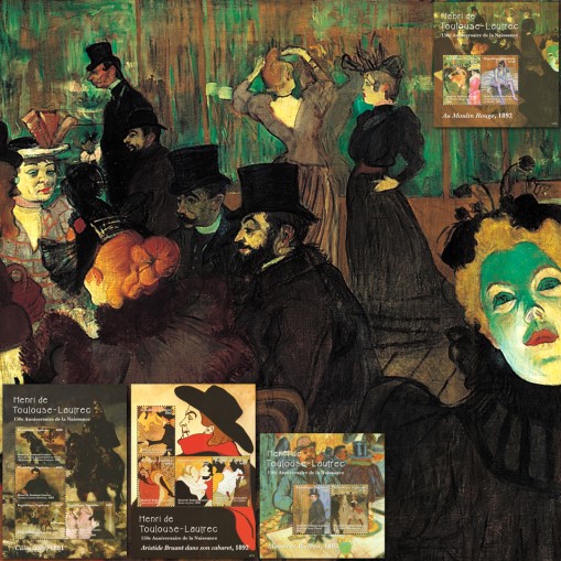 Bloki upamiętniające 150. rocznicę urodzin francuskiego malarza nazwiskiem Henri de Toulouse-Lautrec. Na znaczkach i blokach widnieją reprodukcje jego obrazów i grafik.