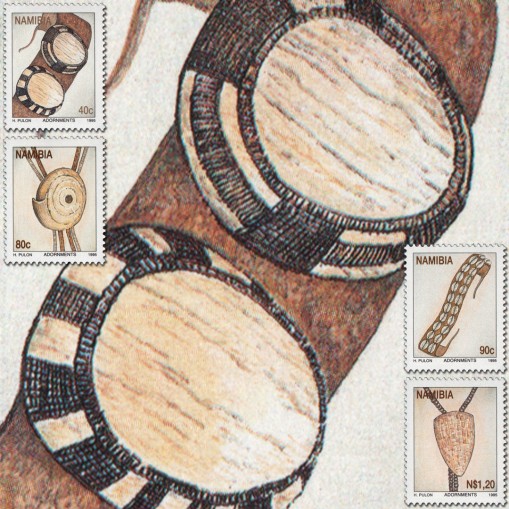 Na znaczkach widnieją następujące przykłady tradycyjnej biżuterii z terenów dzisiejszej Namibii: