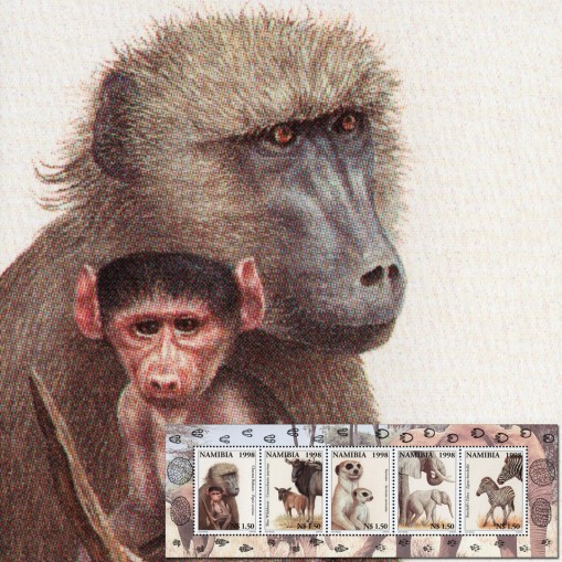 Na znaczkach w bloku widnieją następujące gatunki zwierząt wraz z młodymi: