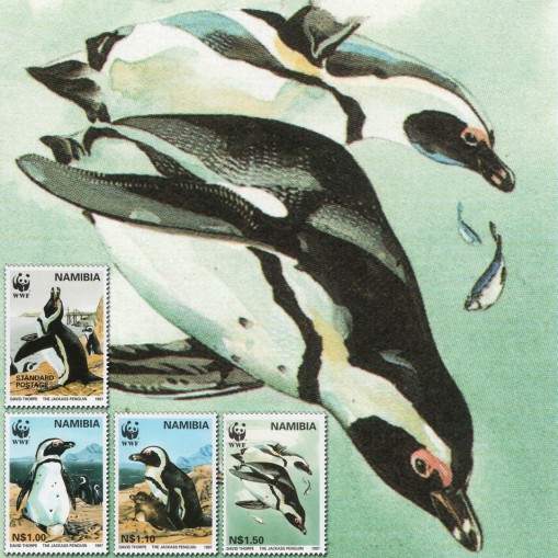 Na znaczkach widnieje pingwin przylądkowy (Spheniscus demersus), gatunek zagrożony wyginięciem.