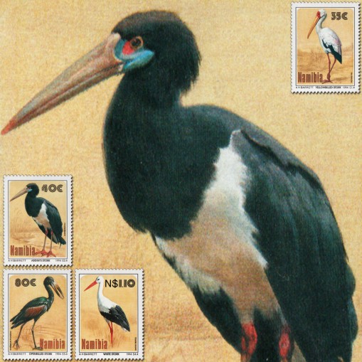 Na znaczkach widnieją następujące gatunki ptaków z rodziny bocianów występujące w Namibii: