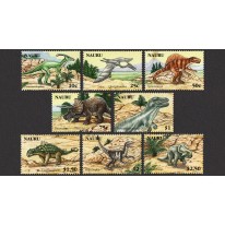 Na znaczkach widnieją następujące gatunki dinozaurów: parazaurolof, kecalkoatl, spinozaur, triceratops, tyranozaur, euoplocefal, welociraptor i protoceratops
