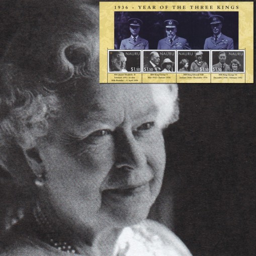 Seria w bloku upamiętniająca 80. rocznicę urodzin Elżbiety II. Na znaczkach widnieje ona z trzema królami: dziadkiem Jerzym V, bratem Edwardem VIII i ojcem Jerzym VI.