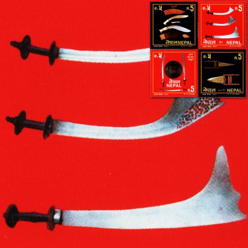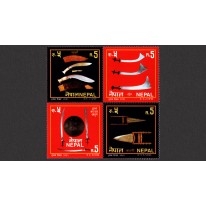 Na znaczkach widnieje tradycyjna broń nepalska, kolejno: