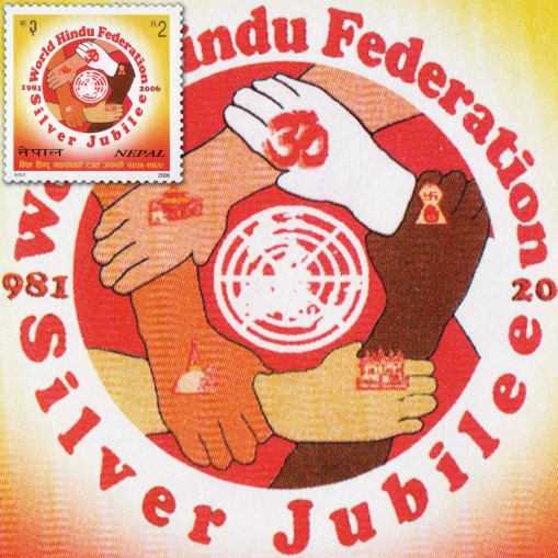 Znaczek upamiętniający 25. rocznicę powstania światowej organizacji hinduistycznej.