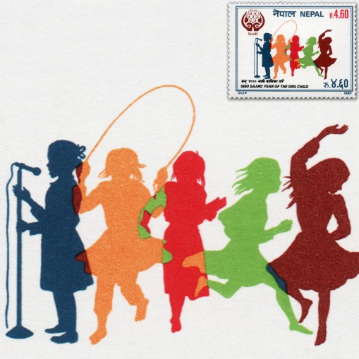 Znaczek upamiętniający Rok Dziewczynek ogłoszony przez Południowoazjatyckie Stowarzyszenie Współpracy Regionalnej (SAARC).