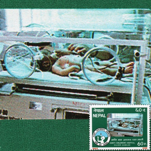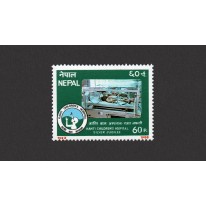 Znaczek upamiętniający 25. rocznicę powstania Szpitala Dziecięcego Kanti w Katmandu.