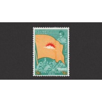 Na znaczku widnieje królowa Ratna, dzieci oraz flaga.