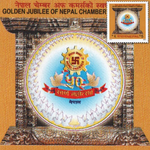 Znaczek upamiętniający 50. rocznicę powstania nepalskiej Izby Handlu.