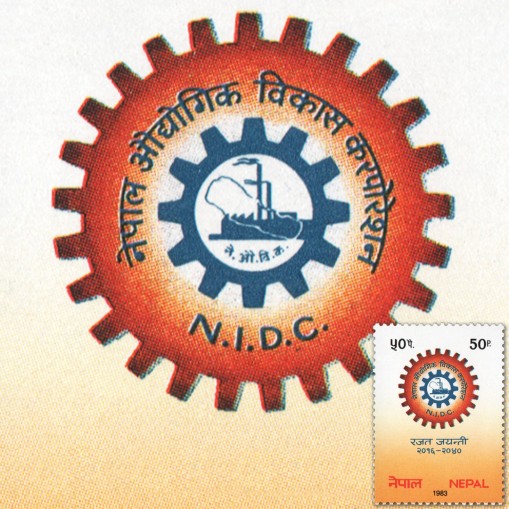 Znaczek upamiętniający 25. rocznicę nepalskiej korporacji odpowiedzialnej za rozwój przemysłowy kraju.