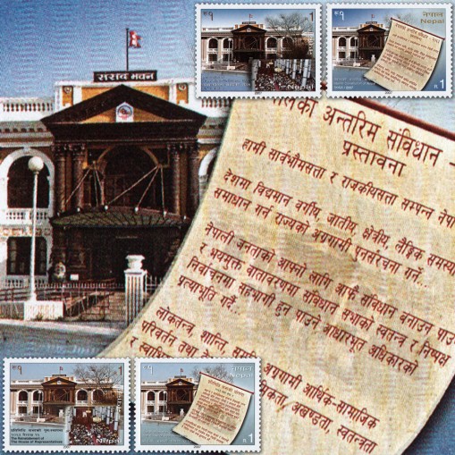 Znaczki upamiętniające przywrócenie parlamentu nepalskiego po zagarnięciu władzy przez króla Gyanendrę. Było to wynikiem walk o demokrację w 2006 roku ruchu zwanego "Jana Andolan II".