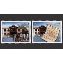 Na znaczkach widnieje budynek parlamentu i treść konstytucji.