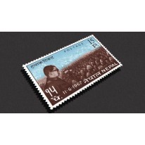Na znaczku widnieje monarcha przed zebranym tłumem.