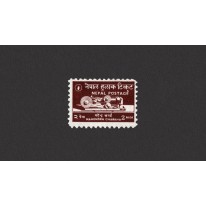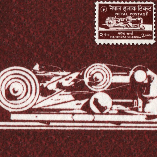 Znaczek upamiętniający wprowadzenie do użytku pierwszych krosien automatycznych w Nepalu.