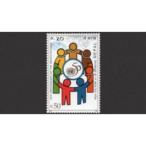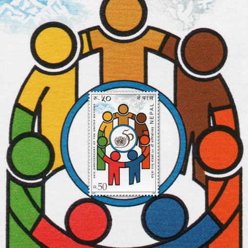 Na znaczku przedstawiono ludzi wokół loga ONZ.