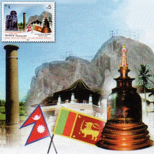 Znaczek upamiętniający 50. rocznicę stosunków dyplomatycznych pomiędzy Sri Lanką a Nepalem.
