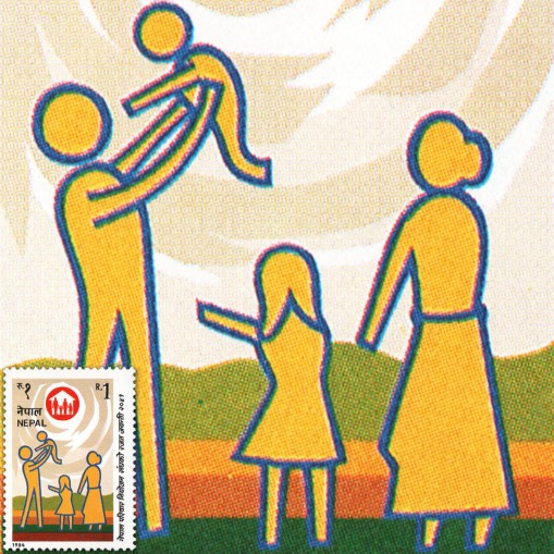 Znaczek upamiętniający 25. rocznicę postania Nepalskiego Stowarzyszenia Planowania Rodziny.