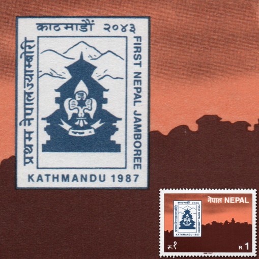 Znaczek upamiętniający pierwsze jamboree skautów nepalskich w Katmandu.