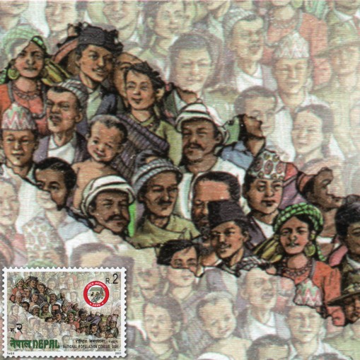Na znaczku widnieje tłum ludzi i logo spisu.