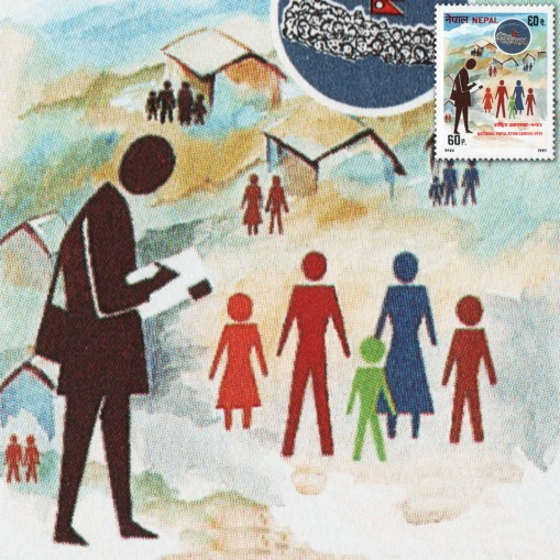 Znaczek promujący spis powszechny w Nepalu.