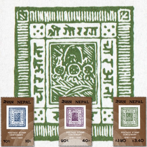 Znaczki upamiętniające stulecie znaczków nepalskich.
