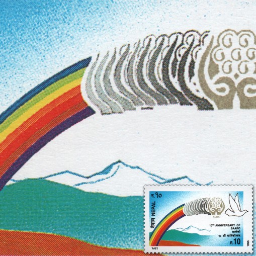 Znaczek upamiętniający 10-lecie istnienia Południowoazjatyckiego Stowarzyszenia Współpracy Regionalnej (SAARC).