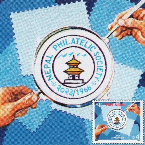 Znaczek upamiętniający 25. rocznicę powstania Nepalskiego Stowarzyszenia Filatelistów.