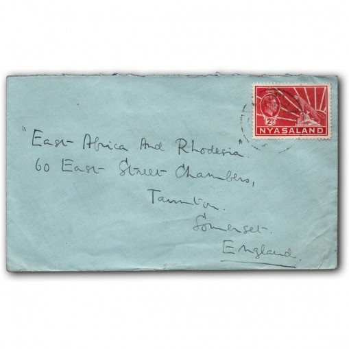 Koperta została zaadresowana z Mzimba w Niasie do Taunton w brytyjskim hrabstwie Somerset.
