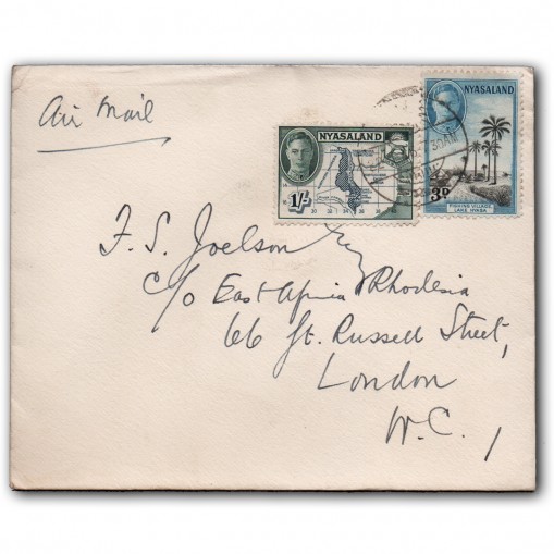 Koperta została zaadresowana z Limbe w Niasie do Londynu w Wielkiej Brytanii.