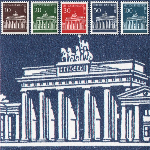 Na znaczkach widnieje Brama Brandenburska w Berlinie.