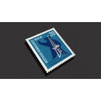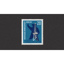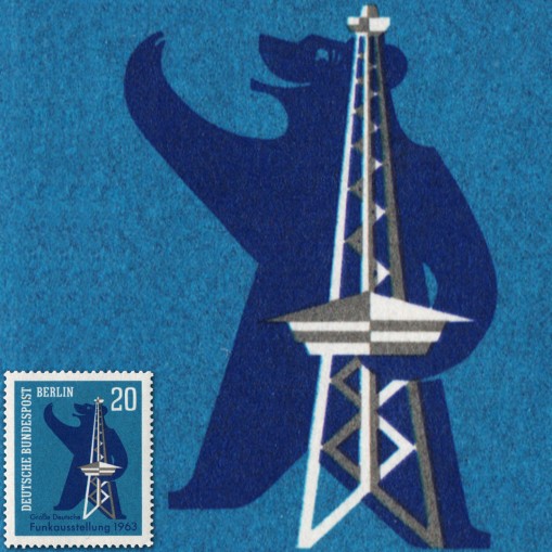 Na znaczku widnieje berliński niedźwiedź i maszt radiowy.