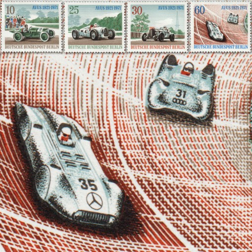 Znaczki upamiętniające 50-lecie toru wyścigowego AVUS w Berlinie.
