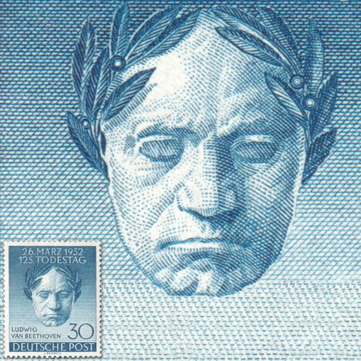 Znaczek upamiętniający 125-lecie śmierci Ludwika van Beethovena (1770-1827).