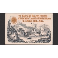 Kartka pocztowa z nadrukowanym znaczkiem o nominale 5Pf upamiętniająca 22. Niemiecki Dzień Filatelistów i promująca spotkanie filatelistów, które miało miejsce 12.-16.8.1910 w Kilonii.