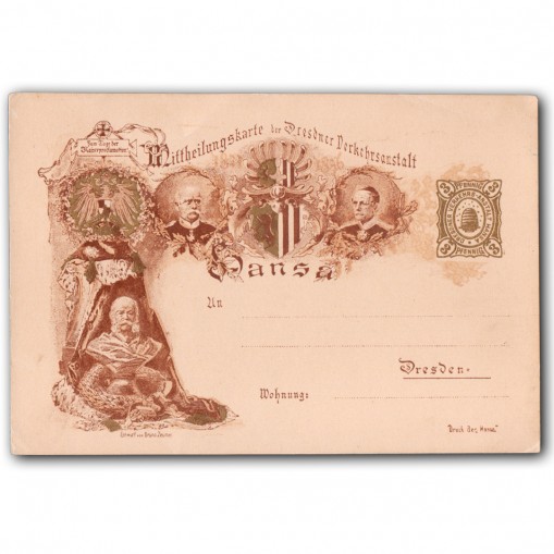 Kartka ta była ważna na przesyłki dostarczane prywatną firmą kurierską „Dresdner Verkehrsanstalt Hansa” na terenie Drezna.