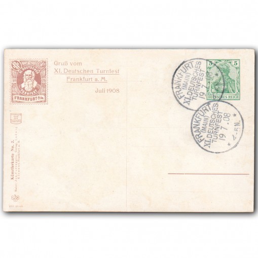 Kartka pocztowa z niemieckiego festiwalu gimnastyki (niem. Turnfest) we Frankfurcie nad Menem w 1908 roku.