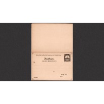Kartka pocztowa z załączoną kartką na odpowiedź i z nadrukowanym znaczkiem, na którym widnieje ratusz w Hamburgu.