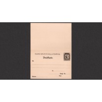 Kartka pocztowa z załączoną kartką na odpowiedź i z nadrukowanym znaczkiem, na którym widnieje statek w porcie w Hamburgu.