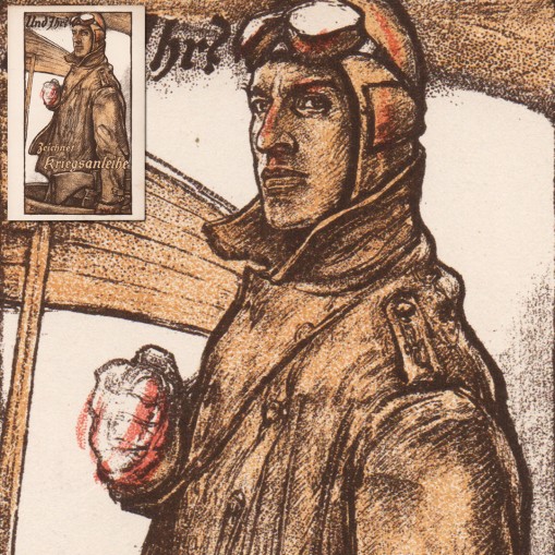 Na kartce widnieje pilot i slogan „Und Ihr? Zeichnet Kriegsanleihe”.