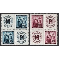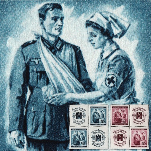 Na znaczkach widnieje pielęgniarka i ranny żołnierz.