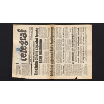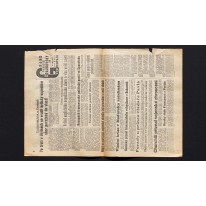 Dwie pierwsze strony gazety „Telegraf” wydanej 5. czerwca 1940 roku w Protektoracie Czech i Moraw. W lewym górnym rogu strony tytułowej widnieje znaczek gazetowy wydany w 1939 roku i służący jako opłata za doręczenie prasy. Na znaczku przedstawiono gołąbka z gałązką lipy w dziobie (lipa uznawana jest za narodową roślinę Czechów i Słowaków). Adresatem gazety jest pan Karel Vitvar (transport drogowy), ulica Kostelní 156 w Pradze.