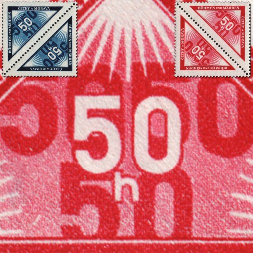 Dwa znaczki w parkach służące jako opłata za doręczenie przesyłki do rąk własnych adresata.