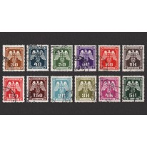 Kasowana seria znaczków urzędowych, na których widnieje herb Czech i Moraw oraz niemiecki orzeł trzymający w szponach wieniec ze swastyką.