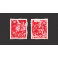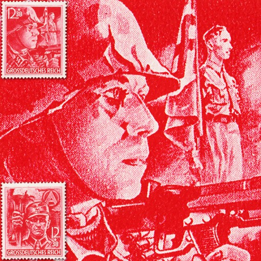 Na znaczkach przedstawiono szturmowca (oficera żandarmerii SA) i elitarnego szturmowca SS.
