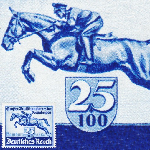 Znaczek wydany z okazji wyścigów konnych „Blau Band" (Błękitnej Wstęgi) w Hamburgu. Derby te były uznawane jako niemieckie Grand Prix.