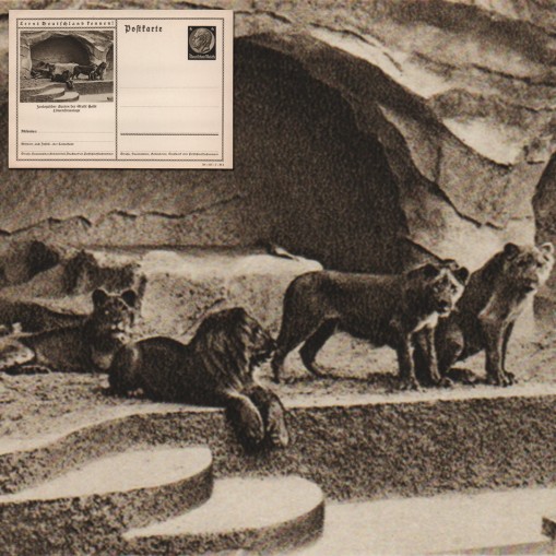 Po lewej stronie przedstawiono lwy w ogrodzie zoologicznym w mieście Halle (numer wzoru kartki: 38–107-1-B3).