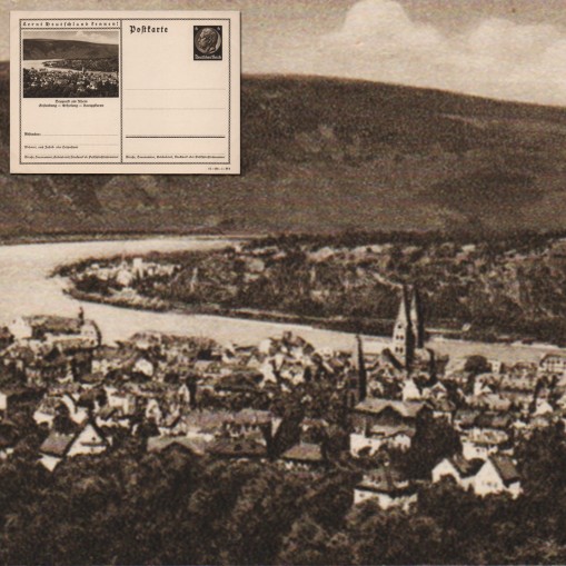 Po lewej stronie przedstawiono miasto Boppard leżące nad Renem w Nadrenii-Palatynacie (numer wzoru kartki: 41–164-1-B9).