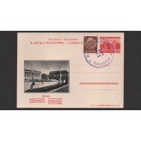 Kasowana grzecznościowo kartka pocztowa wydana pierwotnie w Polsce w 1937 roku (numer katalogowy Cp 77) z nadrukowanym znaczkiem Poczty Polskiej przedstawiającym zamek w Mirze, na której w czasie okupacji niemieckiej naklejono znaczek z wizerunkiem prezydenta Hindenburga i umieszczono kasownik niemieckiego urzędu pocztowego w Inowrocławiu (niem. Hohensalza).