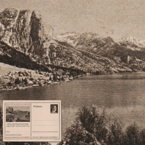 Po lewej stronie przedstawiono jezioro Grundlsee leżące u stóp masywu górskiego Totes Gebirge w austriackiej Styrii (numer wzoru kartki: 41-3-1-B7).