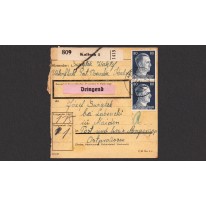 Karta nadania paczki ze znaczkami z wizerunkiem Adolfa Hitlera.